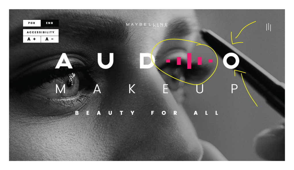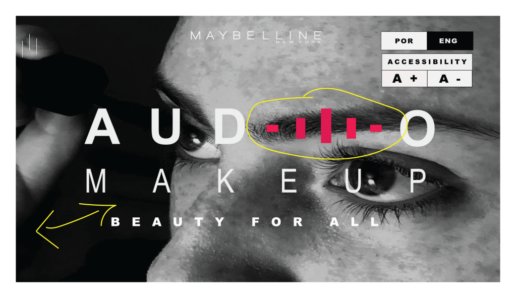This week, the blog post is a comparison and creation of ads in the same campaign. I chose to create a secondary ad in the campaign of a new makeup line for Maybelline NY. They have created an online app that allows the visually impaired to put their own make up on through the use of sound instruction. It’s called the Audio Makeup Project. Here is the original ad that I found on “adsoftheworld.com”.